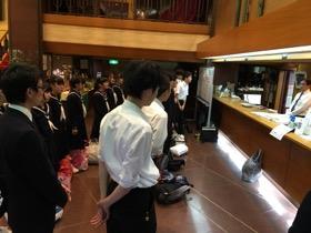 クラス別に、三木半旅館のスタッフの方へお礼の言葉を述べて宿を後にします。「大変お世話になりました。有り難うございました。」