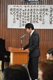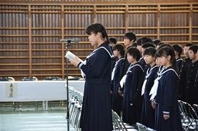 生徒代表「誓いの言葉」では、本校教育目標の具体目標をしっかりと心に受け止め、立派な中学生になるべく、日々努力することを力強い言葉で誓いました。