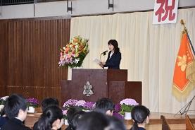 学校長からは、中学校での生活していくために大切にしたいことを話し、それぞれの夢や希望を大切にして、充実した3年間にしてほしい旨の式辞を述べました。また、教育委員会からも同様に、中学校での数多くの経験から心身共にたくましい人間になってほしい旨の祝辞がありました。来賓やPTA会長さんからも、励ましやお祝いの言葉をいただきました。