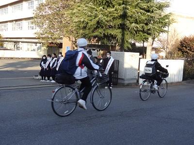 北風が冷たい中ですが、生徒会役員たちが校門前であいさつ運動を展開しています!