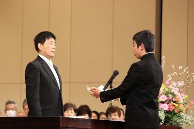 式では、校長先生の「優しい人になってほしい」との話のあと、生徒代表の誓いの言葉、将来への夢・決意、3年生からの励ましの言葉に続いて、エレクトーン奏者 石下有美(いしおろし・ゆみ)先生による演奏とお話、そしてある意味メイン行事と言っていい「親から子、子から親への手紙交換」がありました。