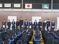 〇7日ぶりに、元気そうな団員6名の生徒たちを見て安心しました。 解散式は、最初団長の大森教育長からこの8日間の概要について簡単な話があました。 そのあと、団員代表の挨拶があり、解散となりました。