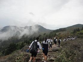 1年生は、10月3日(月)にふるさとの歴史や自然にふれる体験学習「ふるさと学習」として、高原山登山を行います。今日は、学年の先生方で登山コースの下見を兼ねて高原登山に行ってきました。あいにくの曇り空でしたが、八海山神社付近からは雲海が見られたということです。台風18号が発生し、ちょっと雲行きが心配ですが、当日は小雨決行です。カッパや軍手などの装備品の準備をしておくとよいと思います。是非、高原山の自然の美しさにふれ、自然を満喫してほしいと思います。