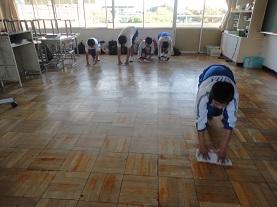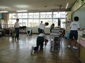 秋休みを直前に控え、今週は「学期末清掃強調週間」が行われました。いつも以上に真剣に清掃に力を入れています。普段できないような黒板の上や蛍光灯、棚の上、床の汚れなど隅々までほこりを取り、1学期の終わりに学校をきれいにして学期を締めくくることを意識して取り組んでいます。どのクラスも清掃が行き届き、清掃用具置き場の中までもきちんと整えられており、本校で重点としている「場を清める」活動が実践化されていることが伺えます。