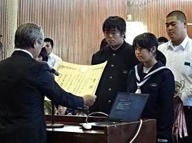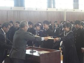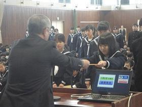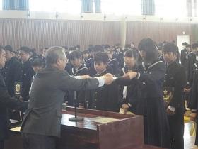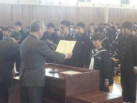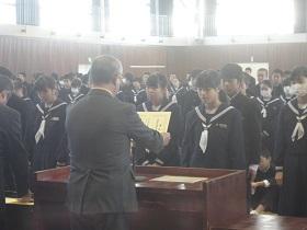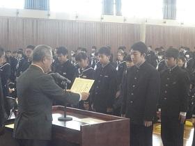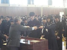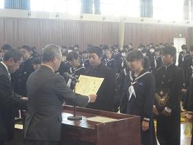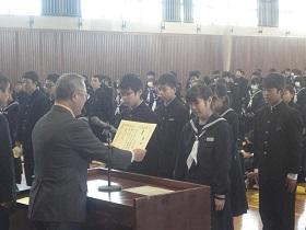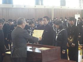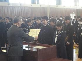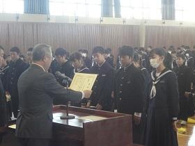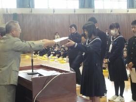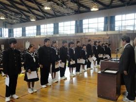 また、式に続いて、先日行われた校内書道展や地区音楽祭、地区新人大会等での活躍を讃えての表彰と賞状伝達を行いました。