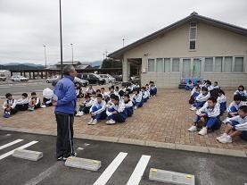 学校長からは、避難の合言葉『お・か・し・も』に「な」もつけ加えることを話しました。「な」は「並ぶこと」ということで、避難の際の注意点として『集団行動』を大切にすることを話しました。