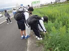 本日、朝7時30分から約1時間、生徒67名が参加して清掃ボランティアを行いました。今週末に予定されている花火大会の会場周辺のゴミを拾うという企画で、「道の駅やいた」を中心に四方に分かれて活動しました。
