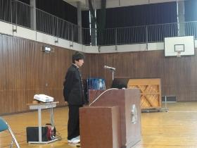 今回の賞状の伝達は、文化面では“人権作文コンクール”と“防犯ポスターコンクール”などの賞状や、先日の“県学校音楽祭県中央祭”の賞状とスポーツ活動では“県新人大会”や“ソフトテニス1年生大会”などの賞状を伝達し、皆で称賛しました