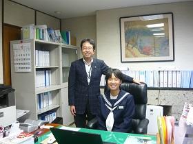 1年生の総合的な学習のテーマは「ふるさと矢板市」です。「矢板市の未来」について調べている1年生女子3人で、齋藤淳一郎矢板市長さんにインタビューしてきました。市長室に案内され、緊張した中でインタビューが始まりました。「矢板市のいいところと悪いところ」「矢板市のイメージは?」などをじっくりインタビューしてきました。最後は市長さんの椅子に座って記念写真を撮りました。