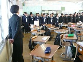 早速、1校時目には、生徒向けのお昼の校内放送で放映する自己紹介あいさつの録画を行い、続いて学校長よりの講話「学校経営」についての話がありました。実習中は様々な講話や授業参観、研究授業が行われます。是非、志を高く持ち「教師になりたい」という夢を叶えてほしいと思います。