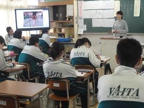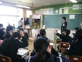 3週間の教育実習期間も残り少なくなりました。今日の2校時目には、青木教生が実習の総まとめとなる研究授業を行いました。