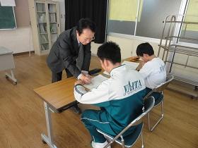 矢中では、4名が後期教育実習をしていますが、その中の2人が2週間の実習、最終日となりました。今日の午後には大学からも担当の先生も見え、情報交換を行いました。