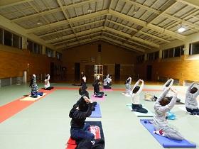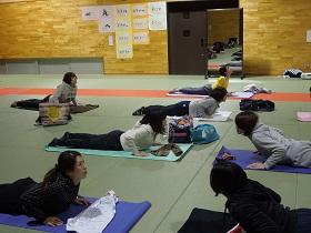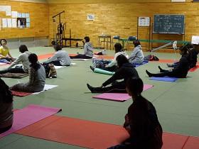 11月10日(木)17時30分から、本校格技場にてPTA保健厚生部主催の健康増進企画の教養講座「yoga~心と体のリラックス」が開かれました。16名の参加で、講師の木村賢子先生の指導のもと約1時間の「ヨガ」の実習を行いました。