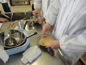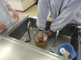2年生の家庭科では、「幼児の生活と家族」というテーマで学習しています。これまでに、遊びと発達の関係について学んだり、幼児の遊びを豊かにするものとして、童話の紙芝居を作ったりしてきました。今回は、「幼児のおやつを作ろう」というめあてで「蒸しパン」を作りました。