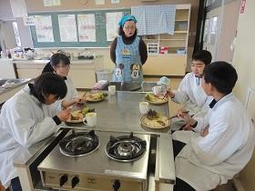 班ごとに協力して、多彩なメニューに挑戦しました。ちょっと焼き過ぎのグループも見られましたが、盛り付けを工夫し、自分たちの味付けにコメントをし合いながら、おいしそうに試食する様子が見られました。後片付けも完璧にこなす姿から、ご家庭でもお手伝いをしていることが伺えました。