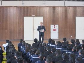 生徒の登下校における交通事故(自転車に乗っていての事故等)の防止と交通ルール・マナーの向上について、臨時全校朝会を行いました。