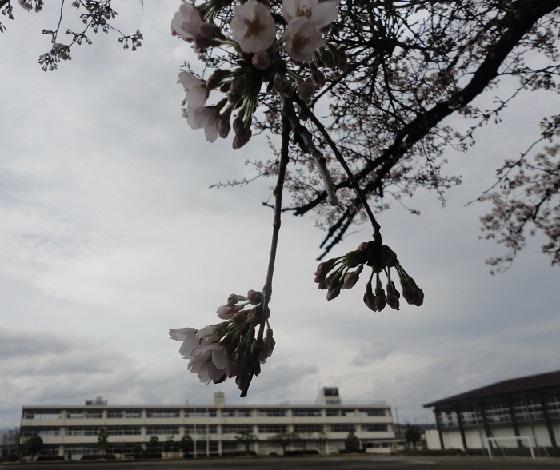 今日は天気予報のとおり、低気圧や前線の影響を受け、広い範囲で雨が降っており、お花見にはあいにくの週末です。今朝の下野新聞には、「矢板武記念館」のシダレザクラの紹介もされていましたが、雨の中の桜見物も、それはそれで風情を感じられるものかもしれません。校庭や内川沿いの桜(ソメイヨシノ)の開花も進み、現在は八分咲き程度です。明後日の「入学式」には、新入生を祝福し満開を迎えるかもしれません。