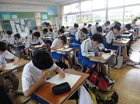 この漢字コンクールは、定期テスト前にクラス対抗のコンクールを行うことで、定期テスト前の学習の動機づけの一助として、生徒の学力向上を目的に行っています。