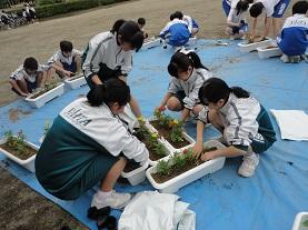 緑化委員会は、花いっぱい運動としてプランターへの苗の移植作業を行ってくれていました。図書委員会は“読書10000ページ”のカウント集計を、学芸委員会は“計算コンクール”の採点作業を、美化委員会では、習字の墨汁を流す水道の汚れ落とし作業を行っていました。また、生徒会執行部や学級委員会などでは、担当教師とともに活動の振り返りと今後の活動について計画等を立てていました。