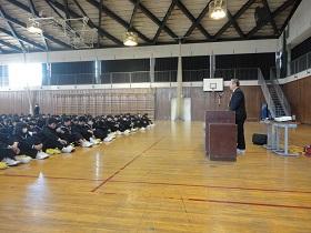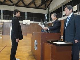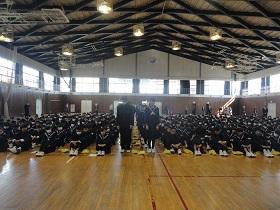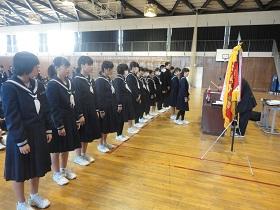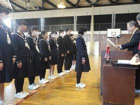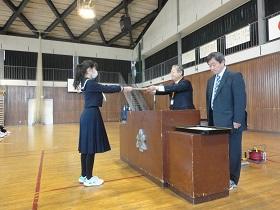 体育館は、冷え込んでいましたが生徒達は卒業式にも増してしっかりした態度で式に臨むことができ、各学級の代表生徒への「修了証書」授与には、卒業式のような厳粛さを感じさせました。