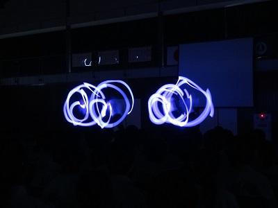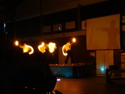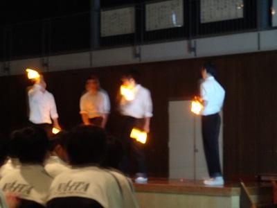 これは 火 を燃やしているのではなく、名前はよくわかりませんが、長い棒で、折るといろいろな光を発するものを、暗い中で振りながらダンスを踊るという、見ていて幻想的なものを披露してくれました!