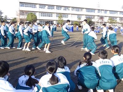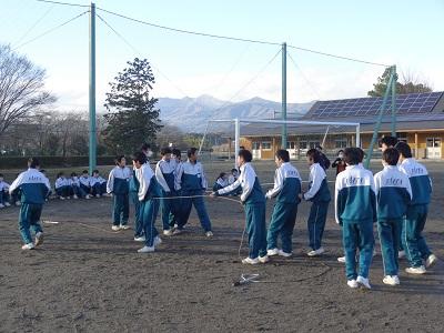 学年別クラス対抗で、男女別、男女合同(全員の部)、男子の回数+女子の回数+クラス全員の回数(総合合計) での勝負です!(3分間)