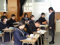 授業では、「東京オリンピック」など、多くの写真資料などを用意し、モチベーション高く、大きな勢いのある声で、1組の生徒を笑顔にしながら、若さでリードしてくれていました。2020年、6年後「東京オリンピック」開催に当たり、自分がどのようなスタンスでスポーツと関わるのか、考える大切な授業になったと思います。