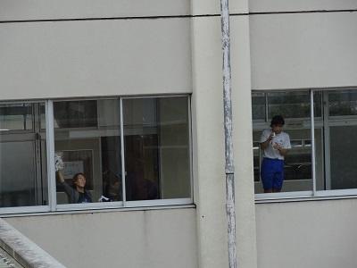 下校の頃、雨風が強まる可能性もありますが、それでもがんばって自転車で帰ろうという生徒が多いようです(^_^)