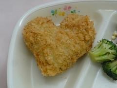 写真のように、「星形」や「ハート型」、「ボール型」など、調理員さん方のアドリブで作ったコロッケになっています。このメニューは他校にないものと考えています。