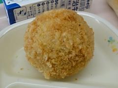 <食育コーナー「今日の献立」>丸パン、手作りコロッケ(1年)、豚肉コロッケ(2,3年)、ブロッコリーサラダ、中華風コーンスープでした。 久しぶりの「手作りコロッケ」が1年生に出されています。