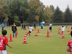 参加した子供たちは、「ドリブル競争」や「ボールリフティング大会」、「フットサル大会」をしながら、一日サッカーをとおして楽しい時間を過ごしていました。顧問の吉永先生と岡本先生が引率で来てくれていました