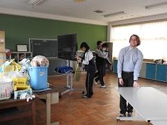 〇3年で登校した生徒は、午前中、自教室や廊下、昇降口の清掃を2時間、汗を流しながらやってくれていました。その後、体育館床のシート敷もしてくれました。