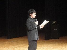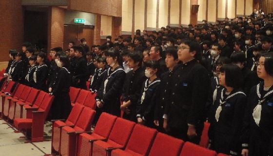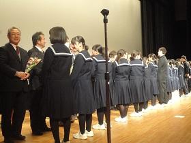 2月21日(火)矢板市文化会館大ホールを会場に、生徒会主催の「謝恩・送別会」が行われました。はじめに「謝恩会」があり、職員には3年のバルガス君から「感謝のことば」があり、全職員に花束をいただきました。その後の「送別会」では、生徒会長の古市君から3年生に対して「送別のことば」があり、送別のアトラクションでは、映画「シンゴジラ」を鑑賞しました。映画鑑賞後には、2学年学級委員長小川君からの「3年生へのメッセージ」と各学級に「花鉢」の贈呈がありました。最後に全校生で「旅立ちの日に」を合唱しまし、前生徒会長の内山さんのお礼の言葉で締めくくられました。