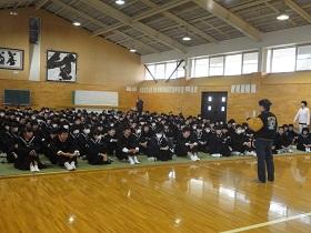 2学年の学年朝会は、武道場で行われました。学年の先生方の話を中心に行いました。