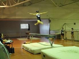 体育館では体操競技が開催されました。はじめての公式大会という1年生部員も数多く見られる中、緊張の中にも真剣に競技に臨み、各種目に全力でがんばる姿に感動しました。