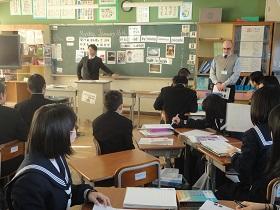 英語科教育の研修として、津田先生が2年5組で授業公開を行いました。