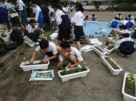 緑化委員会は、花いっぱい運動としてプランターへの苗の移植作業を行ってくれていました。図書委員会は“読書10000ページ”のカウント集計を、学芸委員会は“計算コンクール”の採点作業を、美化委員会では、習字の墨汁を流す水道の汚れ落とし作業を行っていました。また、生徒会執行部や学級委員会などでは、担当教師とともに活動の振り返りと今後の活動について計画等を立てていました。