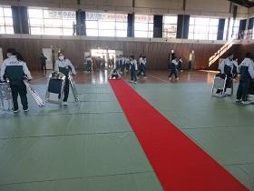 2年生の生徒総出で行ってくれたので、演台・長テーブル・パイプ椅子・体育館のシート・各種の装飾等が見る見るうちにきれいになりました。3年生が卒業し、矢板中の最上級生という自覚がすでに見られ、頼もしさが感じられます。