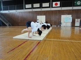 1年4組での保健体育科の研究授業では、学級担任などの参観者が見守る中、器械運動(マット運動)の授業を行いました。初々しい1年生らしく準備運動や補強運動では生徒たちにも緊張の様子が見られましたが、徐々に慣れてくると、グループやペアで活発に協力しあう様子が見られました。教生さんも授業に前向きに取り組み、補助活動にも積極的に関わるなど、指示や指導・支援も適切に行われていました。子ども達ができた喜びを表す姿が印象的でした。