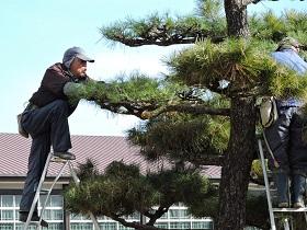 昨日から、矢板市シルバー人材センターによる樹木の剪定が始まりました。校舎前の“松の木”の剪定を進めていただいております。この後、松の剪定を中心に校内の樹木の枝おろしを行っていただく予定です。まだまだ高原下ろしが吹き付ける肌寒い中の作業、ご協力をいただき感謝いたします。ありがとうございます。