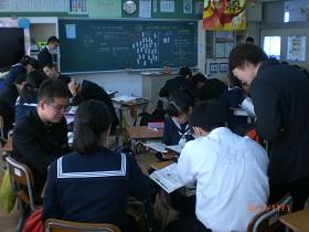 3年3組での社会科の研究授業では、指導担当教員など多くの参観者が見守る中「現代の民主政治」の授業を行いました。ワークシートを活用し、「マスメディアと世論」について個人での思考やグループでの協議を中心とした活動に生徒は集中して取り組む様子が見られました。