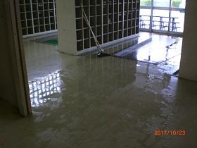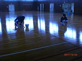 職員作業で廊下や体育館の水取り作業や学習室などの生徒机の入れ替え作業を行いました。