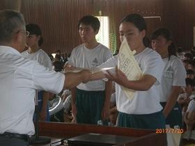 是非、明日からの地区総合体育大会では、チーム力を発揮し全力で「栄光」を勝ち取ってほしいと思います。そして、38日間の夏休みを、それぞれの学年にふさわしく有意義なものにしてほしいと思います。