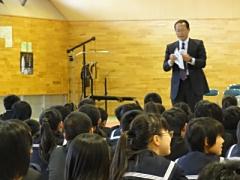 <学力ステップアップ2「学力向上アドバイザー 来校」>県教委、今年度からの事業で「とちぎっ子学力アッププロジェクト」で、矢板中が今年度指定校となっています。 本日、第1回目の訪問がありました。 県教委学校教育課 学力向上推進室 学力向上アドバイザーの小堀 良一先生(前 氏家小学校長)が来校して、本校の学力向上の取り組みについての御支援をいただきました。 小堀先生には、あと4回来校していただくことになっています。 5校時の授業を参観していただきましたが、「子供たち、落ち着いて学習していますね。 黒板には本時のめあてが書かれていて、先生方の背筋を伸ばして教える姿勢がとってもいいですね。」というお言葉をいただきました。 本校生徒の学力が少しでも向上するよう、全校体制で推進していこうと考えています。