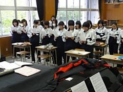 <吹奏楽部の楽器点検>朝から、宇都宮市内の業者が来校し、吹奏楽部の楽器の点検及び、修理箇所の見積もり等をしていただきました。多目的室で、一日かけて点検をしていただきました。 一つ一つの「楽器」は高価ですし、「精密機械(私の長男の言葉では・・・)」ですので、細心の注意を払って使用していますが、故障もしますしメンテナンスも必要になります。 来校した業者さん3名の中に、1人、本校卒業生で吹奏楽部をやっていた「笹沼さん」がいました。 笹沼さんは高校卒業後、楽器修理がやりたくて東京の専門学校へ進学して、現在、県内の楽器店の正社員として活躍しています。