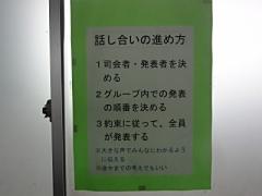 <学力ステップ・アップ1>1年生の各教室、廊下側窓ガラスにこのような掲示(写真)がありました。 「話し合いの約束」、「話し合いの進め方」について、学年が同じベクトルで指導をすすめています。 表現力の向上や「言語活動」の充実につながるものと期待しています。