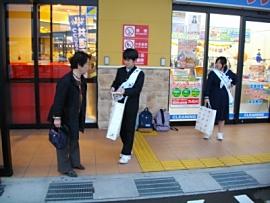 ベイシア、カワチ薬局、オータニ、ダイユーの店頭に立ち、ボランティアの方々と一緒に、