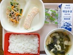 <給食コーナー「今日の献立」>今日の献立は、ご飯、牛乳、ジャガイモと油揚げの味噌汁、切り干し大根の和え物、イカ明太マヨ焼きでした。 写真は撮影してありません。 切り干し大根は煮物と考えていましたが、生まれてはじめての和え物をいただきました。シャリシャリとした食感があって、私好みのメニューでした。