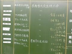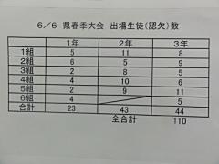 <県春季大会 第1日目>今日から県春季大会が開催されます。写真のように、団体7種目、生徒110名が県大会に参加した関係で、引率で9名の職員が学校を不在になることから4時間の特別日課で対応させていただきました。