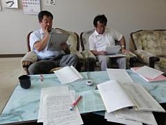 <計画訪問に備えて・・・>教育事務所、市教委の「計画訪問」が明日と明後日の2日間、あります。 明日の火曜日は諸帳簿等の閲覧、水曜日は職員の研究授業とそれら教科指導、全体指導があります。 写真のように、訪問に備えて、帳簿類の準備や矢板中の学校経営概要説明のための読み合わせ等も行いました。 現在の「Happiness」な矢板中構想推進についての助言やアドバイス等がいただけるものと考えています。